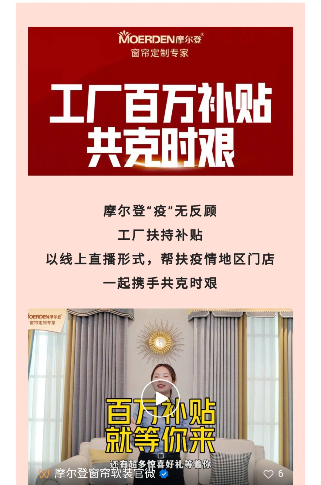 共克時艱 | 摩爾登窗簾工廠百萬補貼,線上直播助店活動圓滿成功!